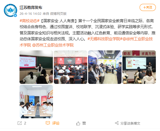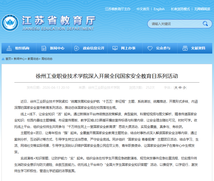 【江苏教育厅】徐州工业职业技术学院深入开展全民国家安全教育日...