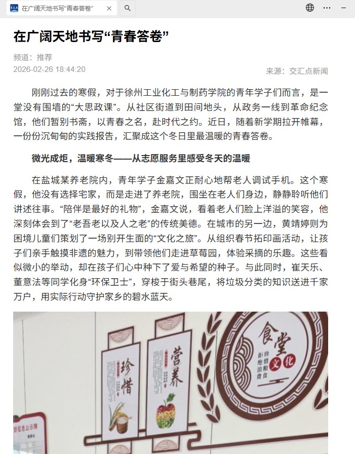 【学习强国】徐州工业职业技术学院 青年学子在广阔天地书写“青...