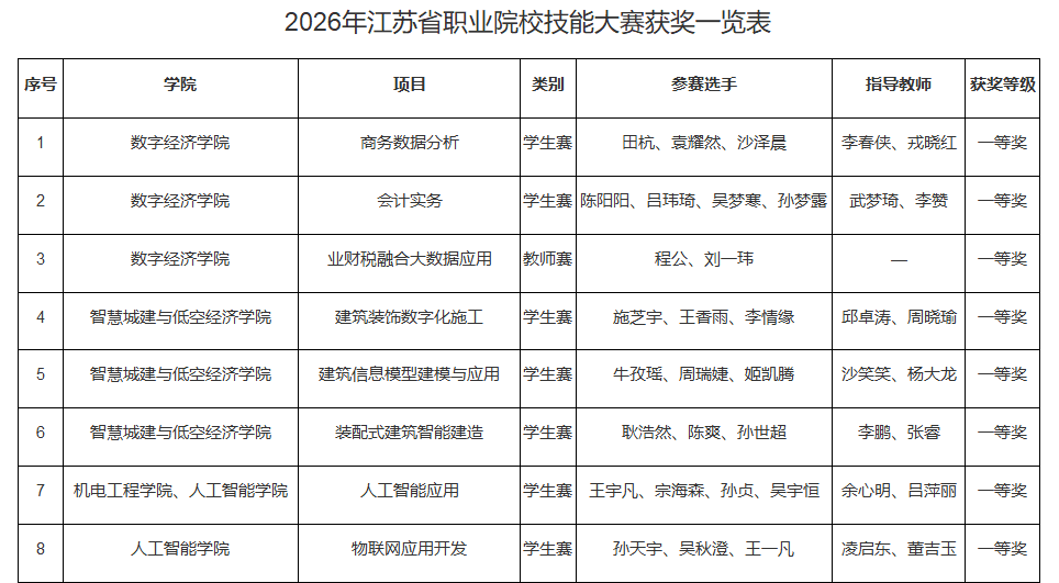 【荣誉】一等奖8项!我校2026年江苏省职业院校技能大...