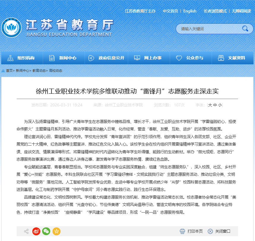 【江苏教育厅】徐州工业职业技术学院多维联动推动“雷锋月”志愿...