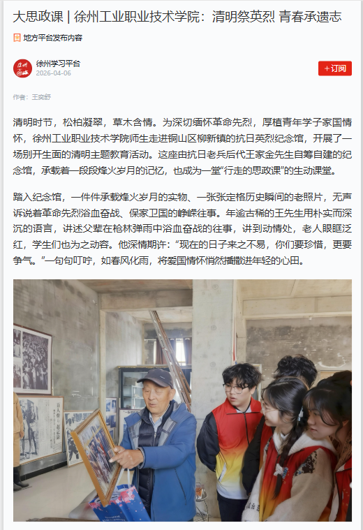 【学习强国】清明祭英烈 青春承遗志——徐州工业职业技术学院开展...