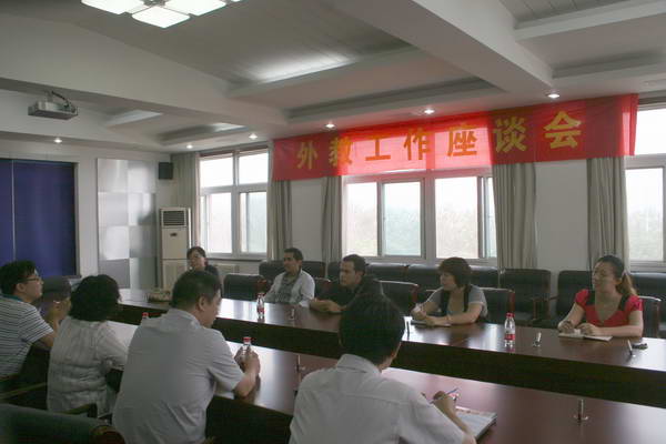 招生与国际交流处副处长王建华邀请外教经常参加学校的一些教研活动,充分发挥外教口语优势,努力为学生和我校老师创造口语实践和了解外国文化的机会,促进教学质量的提高。
