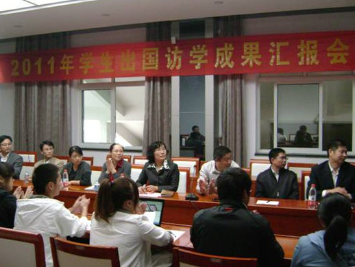 10月21日下午,我校召开了2011年学生出国访学成果汇报会。副院长李红、招生与国际交流处处长陈华堂、副处长王建华、访学团带队老师王炳义、各院系负责学生工作的副院长以及12名出国访学学生参加了会议。