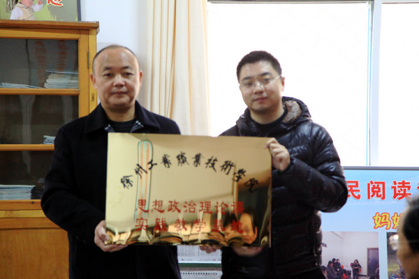 为了深入贯彻教育部有关加强高等院校思想政治理论课实践教学工作文件的精神,本着共同提高思想政治理论素养和“互惠互利、共建双赢”的原则,发挥高校人才优势,凝聚基层群众的集体智慧,思政党支部与跃进村党支部举行了共建思想政治理论课实践教学基地仪式,陈竹书记与马杰主任签订了共建思想政治理论课实践教学基地协议,并举行授牌仪式。随后,乔德阳书记向跃进村党支部捐赠了思政支部精心准备的政治理论书籍。