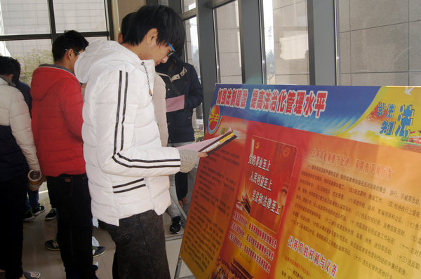 本次活动包括“大学生法律服务中心成立揭牌、现场法律咨询活动、发放宣传材料、法治案例图片展、专题讲座、大学生撰写实践考察报告”等系列内容;大学生法律服务中心挂靠思政部思想道德修养与法律教研室,每周三、五下午有专人负责对我校大学生进行服务咨询;近期法律服务中心将招募大学生志愿者,配合教师参与法律学习及服务咨询活动。届时,热忱欢迎我校广大同学积极参与;同时,也期盼我校师生员工多提宝贵建议和意见,法律服务中心将规范工作流程,提高水平,为同学们提供高效便捷的服务。