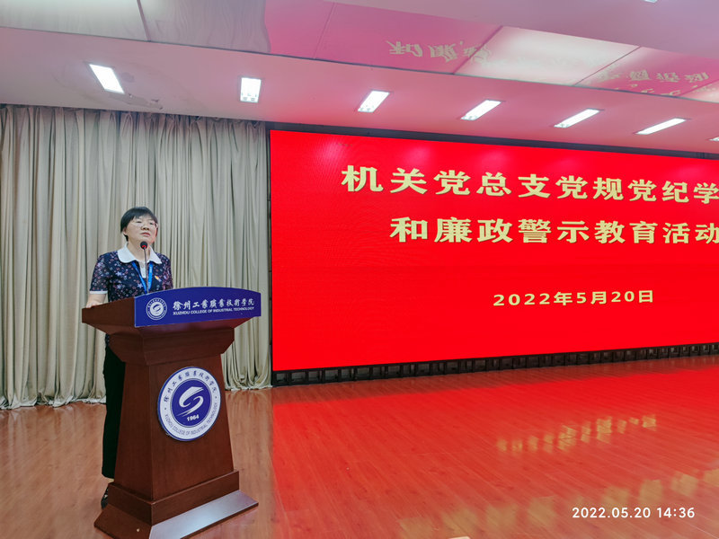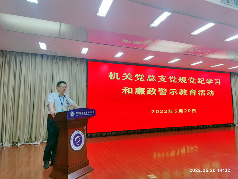 为进一步加强廉政教育,筑牢拒腐防变思想防线,按照学校纪委《关于开展警示教育的通知》要求,5月20日下午,机关党总支在图书馆报告厅开展党规党纪学习和廉政警示教育活动,活动由机关党总支书记朱伟军主持。