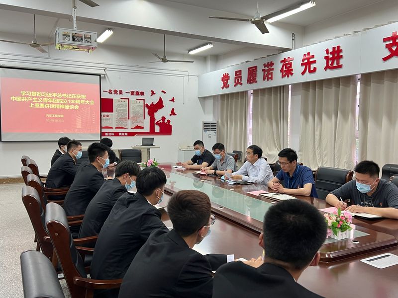 汽车工程学院团总支将带领全院青年学生深入学习贯彻习近平总书记在庆祝中国共产主义青年团成立100周年大会上的重要讲话精神,开展形式多样、内容扎实、深入透彻的研学活动,引导青年学生以昂扬的奋斗姿态和优异成绩迎接党的二十大胜利召开。