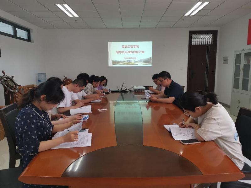 为切实加强学生心理健康教育工作,提升辅导员队伍心理健康教育工作水平,5月30日下午,信息工程学院在B18-1019会议室召开心理工作专题研讨会,学院党总支副书记韩永印和全体辅导员参加此次研讨会。