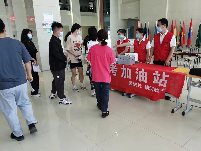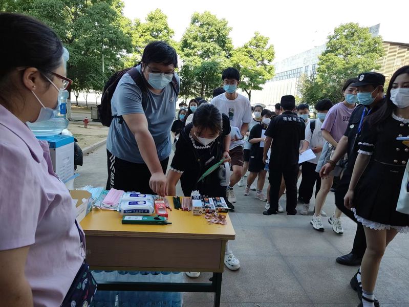 考虑到考生的需求,还专门设立了“助考加油站”,为广大考生提供便民爱心服务,精心准备了2B铅笔、2B橡皮、纸巾、瓶装矿泉水、直饮水、应急口罩、应急药箱等应急物资,以备学生不时之需,用细心周到的服务为考生助力加油。