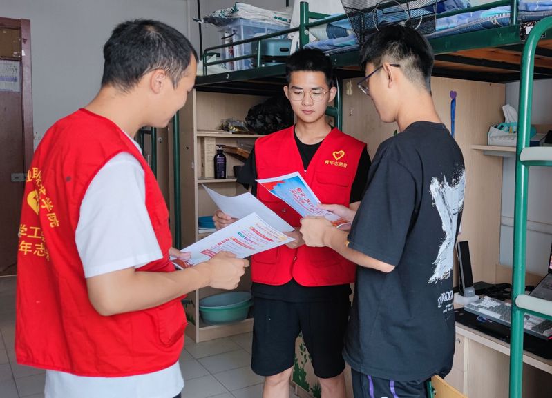 依据自己的专业特长,志愿者们深入宿舍开展宣传、宣讲,发放宿舍安全知识温馨提示宣传页,普及用电用水安全小知识和应对高温天气的小贴士,提醒同学们临近期末离校,更应该绷紧“安全弦”,筑牢“安全网”,遵守宿舍安全管理规定,防患于未然。