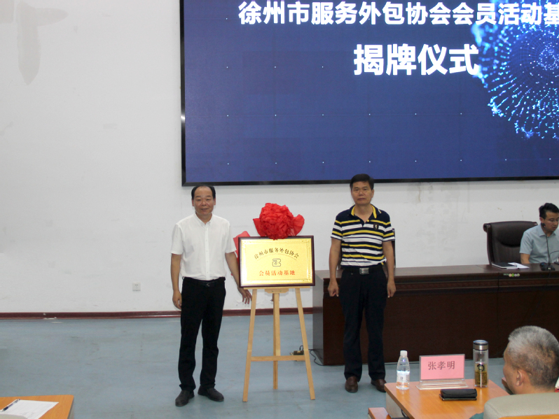 活动第二项,徐州市服务外包协会在园区设立会员活动基地,由徐州市服务外包协会秘书长杨红杰和大学科技园总经理张恒中共同为“徐州市服务外包协会会员活动基地”揭牌。