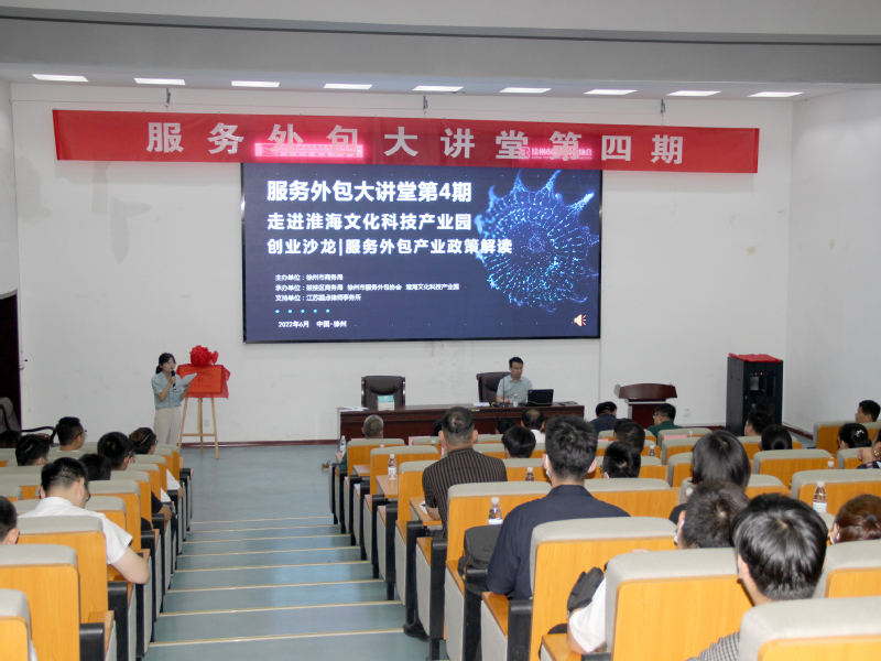 2022年6月24日下午,“服务外包大讲堂”第四期服务外包政策解读宣传活动在大学科技园召开。本次活动由徐州市商务局主办,鼓楼区商务局和徐州市服务外包协会、徐州工业职业技术学院大学科技园承办。