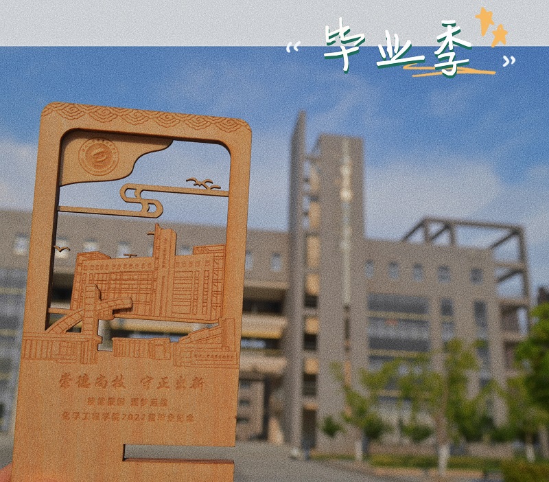 点燃浓浓爱国情,技能报国。各班级召开“技能报国,逐梦远航”毕业主题班会,组织毕业生认真学习《技能报国,逐梦远航——致2022届全体毕业生的一封信》,勉励2022届毕业生秉承“求真、求实、求精、求新”的校训,“立鸿鹄志,做理想坚定、永不气馁的奋斗者”“技能报国,做潜心钻研、建功立业的行动者”“饮水思源,做心怀感恩、心系家国的反哺者”。学院精心制作“逐梦远航”化工学院定制版手机支架,左上角的学校校标代表着母校永远和毕业生心连心,敞开的校门寓意着母校永远都是同学们的精神家园和坚强后盾。暖黄色调的B07和B08教学楼,更加体现了化工学子生活学习的温馨。“崇德尚技,守正出新”激励毕业生“牢记强国志,践行报国行”,飞翔的鸟儿象征着毕业生展翅高飞、技能报国、逐梦远航。