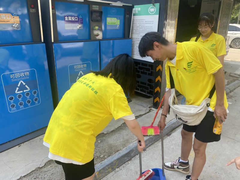 集思广益,美化社区环境,提升幸福感。团队成员纷纷对社区环境的美化提出自己的见解。此外,团队成员全面对社区垃圾进行了清理和分类。本着弘扬“奉献、友爱、互助、进步”的精神,团队成员给垃圾分类工作人员分发矿泉水,慰问了高温下辛勤的工作者。