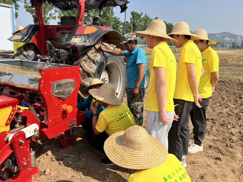 学习专业知识,夯实机械专业基础。“农业在改变,技术要跟上,现代农业的发展的未来是智慧农场,农机装备国产化现代化在这个过程中将发挥重要作用。”徐州市农业机械化总工程师陈文龙针对农业机械为参与实践活动的同学们上了精彩一课。陈文龙总工程师还带领同学们学习农业机械基本操作知识、基本故障排查与维修知识,对于当前农业机械化过程中遇到的重难点问题与实践团师生进行讨论沟通。王敏表示机械制造与自动化专业的学生,书本上的机械知识在实践应用中还比较欠缺,没有深入的实践认识,因此从去年开始机电学院便开始有意识地与地方共建暑期社会实践基地,通过到实际种植场景学习相关机械知识,极大提升了同学们对于农业机械的认识。