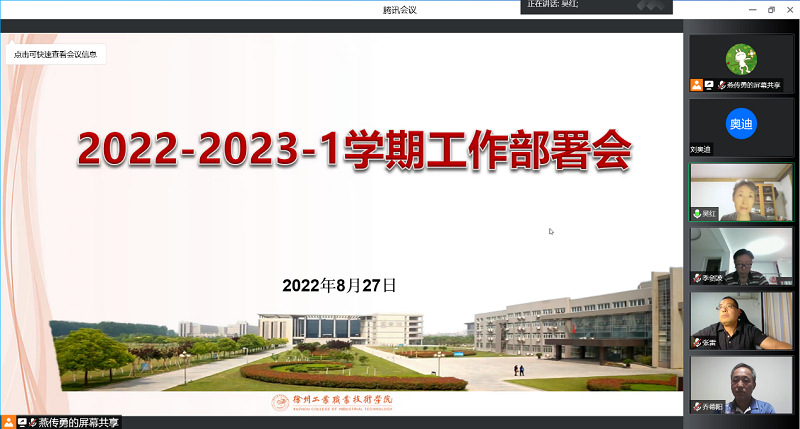 为了全面落实立德树人根本任务,推进新学期学院各项工作顺利进行,更好地助力国家“双高”建设,确保人才培养质量,8月27日晚上,化学工程学院召开新学期全体教职工大会。学院领导班子成员、全体教职工通过腾讯会议线上参加,会议由学院党总支书记吴红主持。