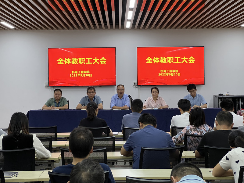 9月30日机电工程学院召开全体教职工大会,对下半年重点工作、安全稳定工作、教学管理工作等进行通报和布置,学院全体教职工参加了本次会议。