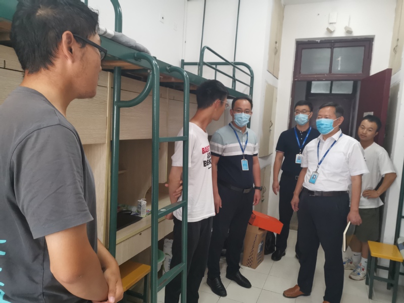 开展学生宿舍安全检查,落实平安宿舍建设工作。为进一步加强学生宿舍区域的安全隐患排查,9月30日上午,学院领导班子带领辅导员老师对学生宿舍进行了一次全面检查,切实做好防火、防盗等学生宿舍方面的安全工作。陈祥章提醒同学们要严格遵守学校疫情防控的各项要求,及时调整生活作息,叮嘱同学们注意安全用电,强化安全意识;对于存在安全隐患和卫生问题的宿舍,督促宿舍成员及时整改。刘海涛亲切询问同学们的假期生活安排情况,叮嘱同学们一定要注意人身财产安全,保管好贵重物品,防止网络诈骗,提醒同学们要及时调整好心态、状态,在疫情防控常态化下规划好学习、生活安排,养成良好习惯,确保宿舍安全。