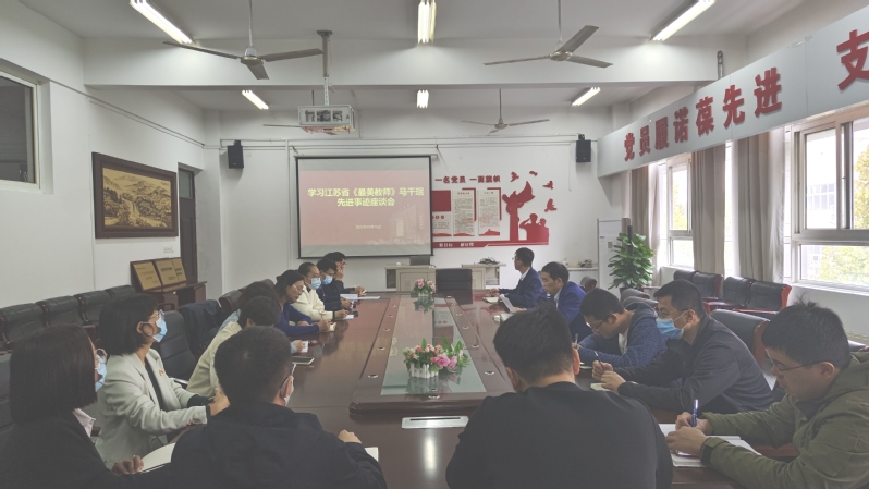 座谈会上,顾广辉对江苏“最美教师”马千珉老师的先进事迹作了简要介绍,他强调“最美教师”的责任心充分体现在对学生尽心、对工作尽职、对社会尽责的态度。与会教师结合自身与马千珉老师在工作和生活中交往的点滴事例踊跃发言,分享马老师在教学和心理辅导工作中的故事和事例,使大家对她有了更加全面和深入的认识。与会教师纷纷表示,要以马老师为榜样,学习他爱岗敬业、精益求精的职业操守和倾心育人的大爱情怀,努力提升育人本领,做好学生成长路上的知心人、热心人和引路人。