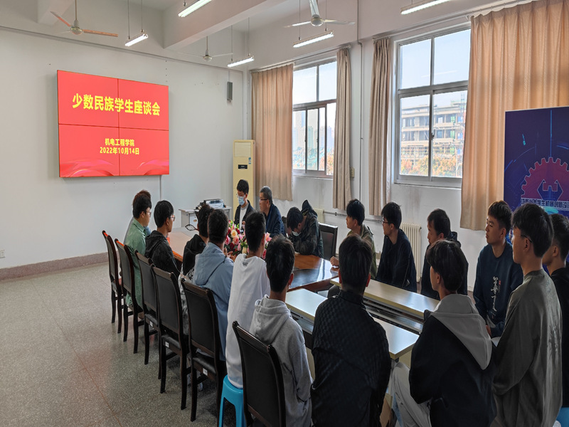 为深化民族团结进步教育工作,铸牢中华民族共同体意识,进一步加强与少数民族学生的沟通和交流,全面了解我院少数民族学生学习、生活情况,不断提升少数民族学生教育管理水平,10月14日,机电工程学院召开了少数民族学生座谈会。学院党总支副书记王贵锋、年级辅导员和和少数民族学生参加了座谈会。
