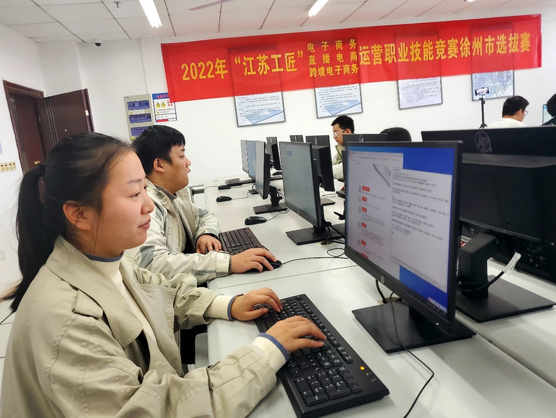为深入贯彻习近平总书记关于职业教育的重要指示,全面贯彻党的教育方针,着力培养高素质技能人才,充分调动广大学生学技能、增本领的积极性,提升学生的职业素养,检验教学效果和学生学习成果。11月5日,工商管理学院举办2022年“江苏工匠”电子商务运营、直播电商、跨境电子商务职业技能竞赛徐州市选拔赛。