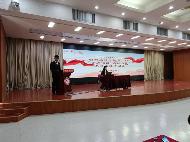 为广泛开展树正气、树榜样、树典型活动,深入挖掘和发挥先进典型的示范引领作用,在全院范围内营造“积极进取,向榜样看齐”的良好氛围,11月17日下午,材料工程学院在图书馆报告厅开展了“身边榜样,前行力量” 先进事迹宣讲会,学院国家奖学金获得者高分子2104班张玮钧作个人事迹分享。学院党总支副书记周树会、团总支书记胡童、各年级辅导员及学院近200名学生代表参加了宣讲会。