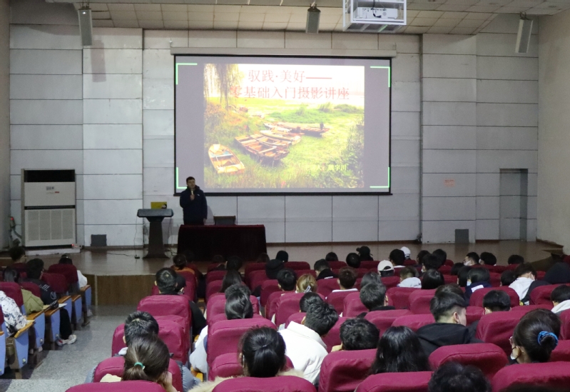 为丰富大学生课余生活,普及摄影知识,提高广大摄影爱好者的摄影水平、想象力、审美能力,在校团委的指导下,校学生会于11月15日在西门报告厅组织开展“驭践·美好—零基础入门摄影讲座”摄影技术培训活动。培训由校团委兼职副书记、汽车工程学院辅导员、徐州市摄影家协会会员魏宇川老师主讲,活动采用线上线下同步进行的方式。校学生会、各二级学院学生会宣传部全体成员及部分摄影爱好者共计231人参加培训。