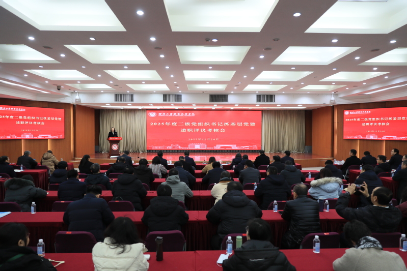 近日,我校在图书馆报告厅召开2025年度二级党组织书记抓基层党建述职评议考核会,党委书记刘莹主持会议并讲话,党委副书记、校长鲍桂楠,党委副书记李红,副校长孙健身、张芳儒、曾凡远,纪委书记葛志亮等校领导出席会议。