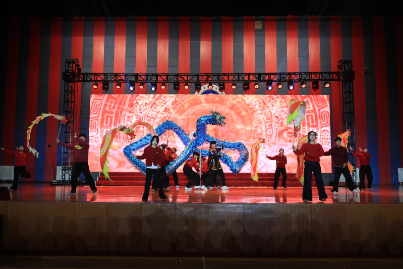 演出在气势恢宏的《龙腾狮跃》中拉开帷幕,舞龙舞狮刚劲有力,鼓点铿锵,瞬间点燃全场热情。教职工深情献唱《我的祖国》,以赤子之心礼赞盛世山河;化学工程学院的《格桑贺春》舞姿灵动,尽显民族风情;信息工程学院的《美丽的神话》以柔美歌曲营造诗意意境;本科生院的《舞动青春》活力四射,彰显青年锐气;建筑工程学院的歌曲《大鱼》空灵唯美,营造出治愈人心的童话氛围,汽车工程学院学生带来的歌舞《如愿》深情诉说对未来的期许,引发全场共鸣。