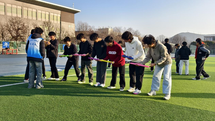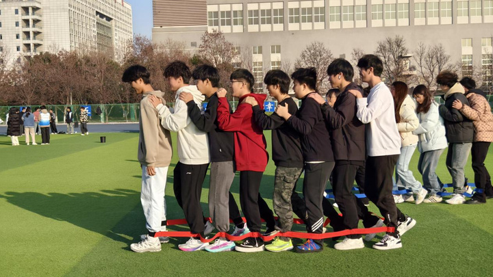 体趣融合释放压力,营造积极成长氛围。认识到积极的情绪体验与良好的社会连接本身就是重要的心理资源,学校致力于将心理健康教育从课堂拓展至更具活力的户外与团体场景。通过举办“聚能冬日 拓心前行”校园心理趣味运动会,设置“一圈到底”“巨人脚步”等四项团队协作项目,引导学生走向户外、舒缓情绪。赛场上,同学们暂时抛开学业压力,全情投入。为了共同的目标,他们彼此鼓励、协商策略、默契配合,在一次次的尝试与突破中,不仅锻炼了身体,更深切体验到了团队支持的力量和集体成功的喜悦。赛场边,加油声、欢呼声、笑声此起彼伏,热烈的氛围驱散了冬日的寒意。这场别开生面的运动会,超越了单纯的体育竞赛,成为一堂生动的 “积极心理学”实践课。它让同学们在运动中释放累积的压力与焦虑,在合作中深化彼此的友谊与信任,直观地诠释了 “在运动中疗愈心灵,在互动中汲取能量” 的健康理念,有效营造了阳光、包容、互助的校园心理成长氛围。