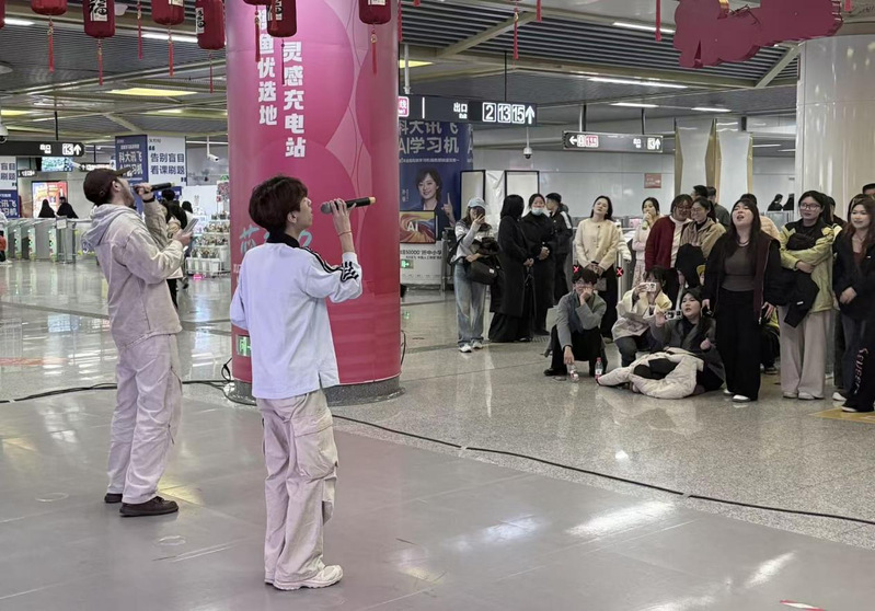 活动现场,地铁站厅内人头攒动,暖意融融。我校师生精神饱满、技艺精湛,轮番登台。悠扬的歌声唱出青春心声,灵动的舞姿展现蓬勃朝气,为城市出行注入温暖与活力。过往乘客纷纷驻足,用手机记录下一幕幕美好瞬间,现场互动频繁,掌声不断,成为地铁出行途中一道亮丽的“青春风景线”。表演之余,志愿者们还主动为乘客提供路线指引、购票协助、出行咨询等贴心服务,以暖心行动践行志愿服务精神,赢得乘客和地铁工作人员的一致好评。