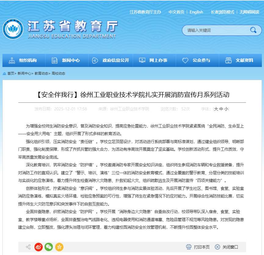 【江苏教育厅】徐州工业职业技术学院扎实开展消防宣传月系列活动