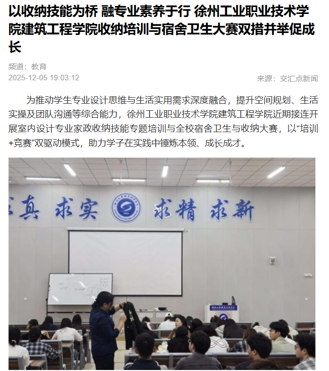 【新华日报·交汇点】以收纳技能为桥 融专业素养于行 徐州工业职...
