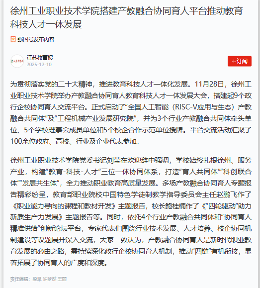 【江苏科技报】产教融合协同育人教育科技一体发展大会在徐州召开